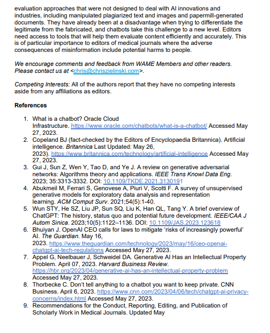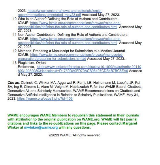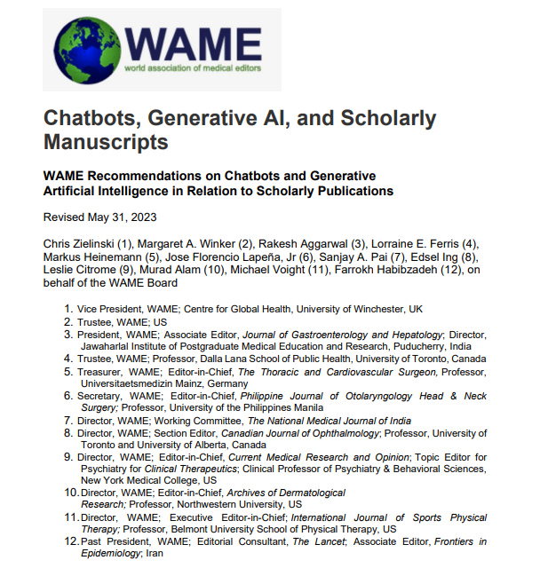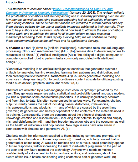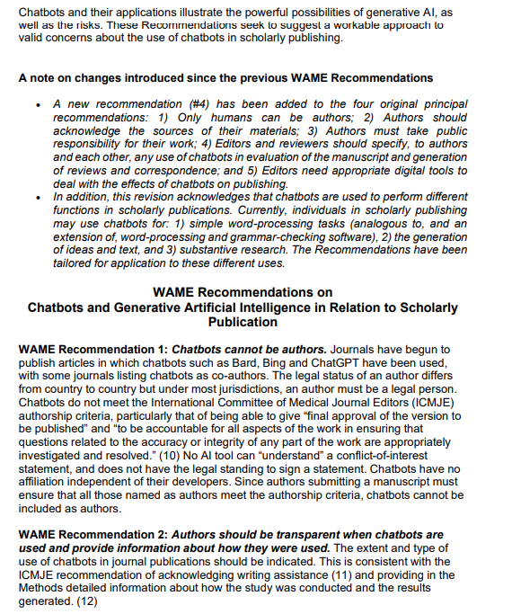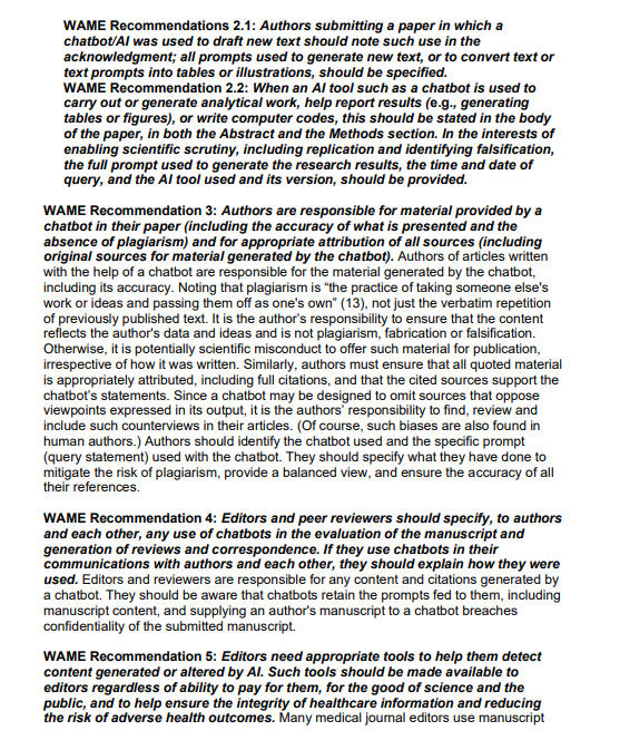 WAME Recommendations on Chatbots and Generative Artificial Intelligence